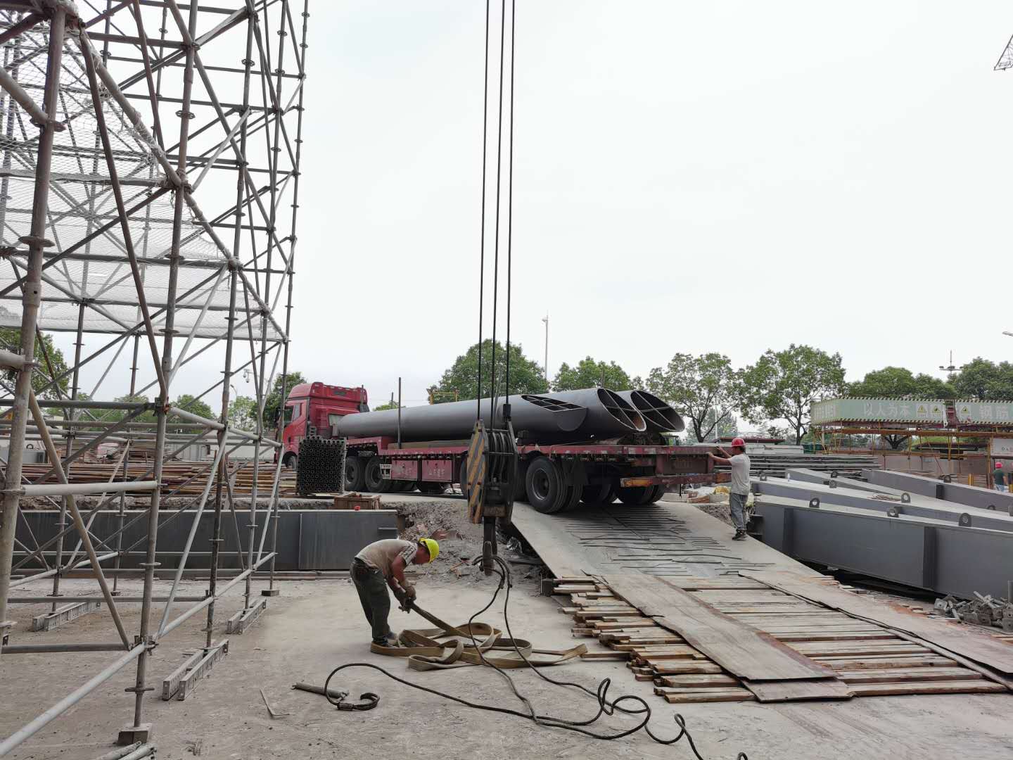 南京揚子江項目加班卸車,吊運材料